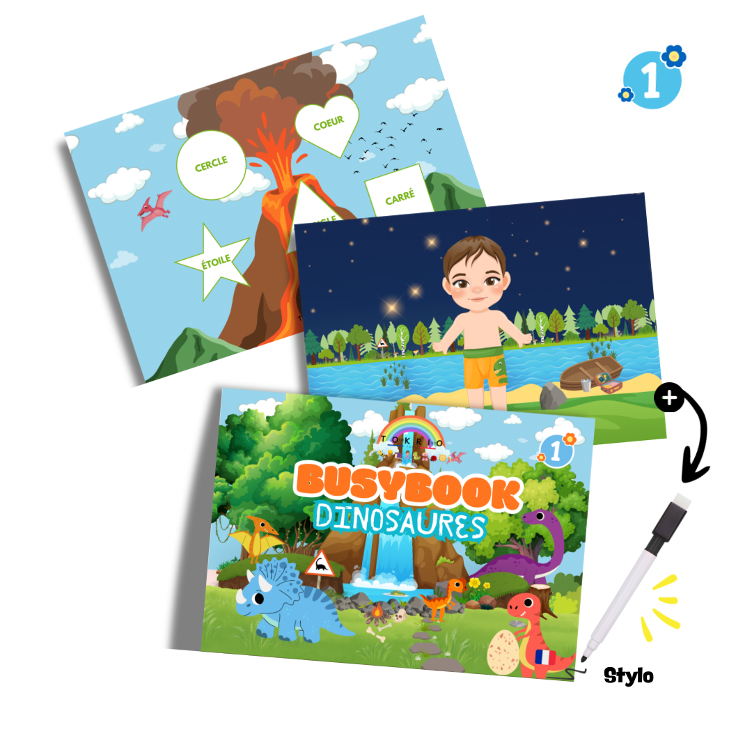 Offrez aux enfants un voyage dans le monde des dinosaures tout en apprenant les bases de l'éducation avec ce BusyBook Dinosaure.